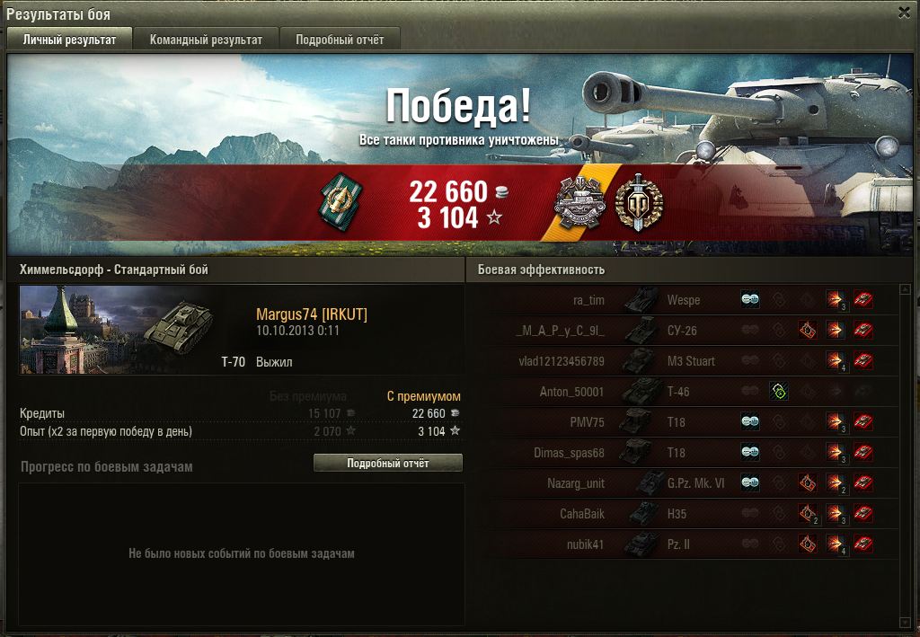 Ну вот, наконец-то, на семьдесят пятом бою, смог взять на Т-70 "Мастера" в компании с "Орликом".