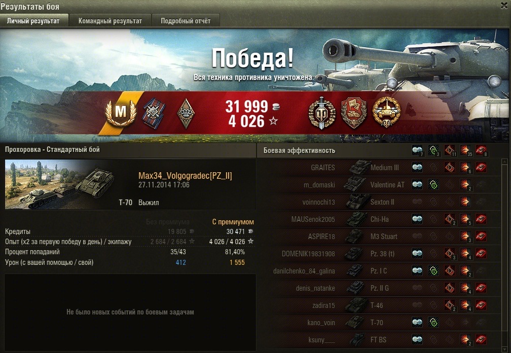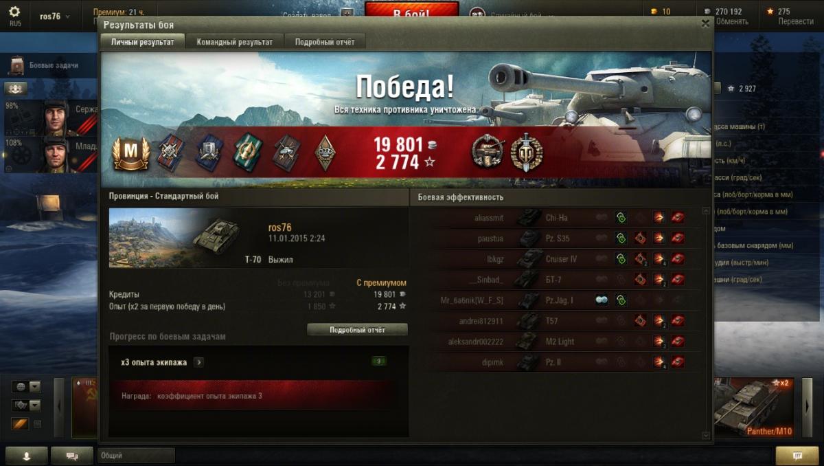 Получено опыта: 2 774 (x2 за первую победу в день)