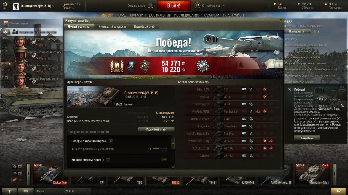 Сыграл боёк на Т95Е2 сильной ущербности не отметил. Попал против 8х уровней. Прем как прем, слоупочный немного, пушка средненькая, мобильность средненькая что странно вроде танк не огромный и двигатель 10 уровня.