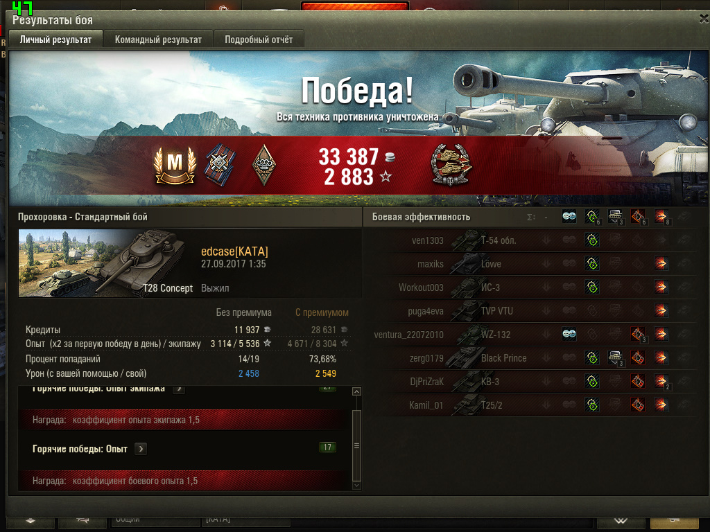Где-то год не везло : то ПТ не хватает ,то не выживаешь ( в основном на Е50 , месяц на Е50М ).