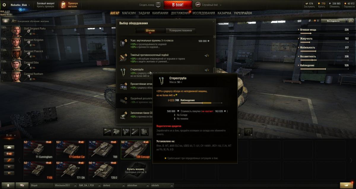 2. 2. Выберите расходные материалы, которые Вы бы взяли в бой на T28 concept: