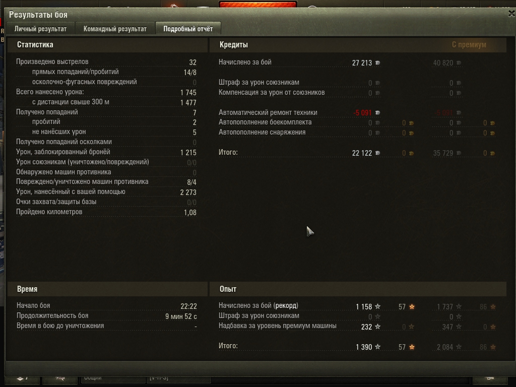 По итогам боя я ещё 79480 серебра должен - 20 ББ, 11 БП + ручные ремкомплект и огнетушитель.