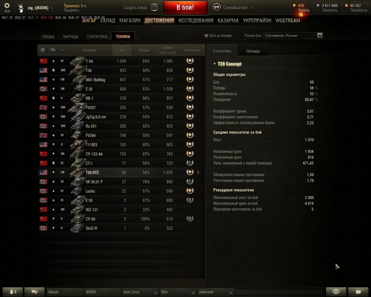Достижения в бою: «Основной калибр», «Стальная cтена», Знак классности «Мастер»