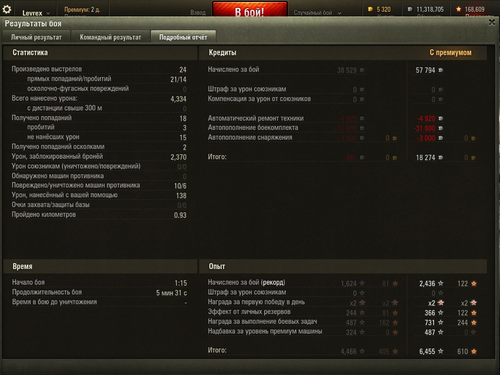 P.S. Кстати сегодня увидел его в прицеле будучи на шпроте в ближнем бою. Первый выстрел в бок, второй выстрел в крышу, третий в нлд и он в ангаре. Он за это время успел лишь, дважды меня не пробить. И это в бою без девяток.