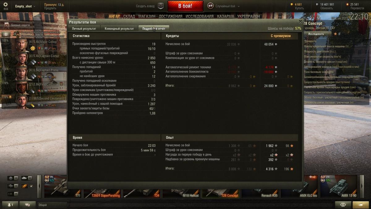 Только получил. Съездил три боя. Первые впечатления. Танк играбельный. Но... Понятно танк акционный и все такое, но извините три боя три победы и я в минусе в итоге. Это как понимать? Причем голдой не стрелял, расходники обычные. Это что за фигня? Да у меня СУ-14-1 фармит. А Тигр I тогда просто мегафарм машина по сравнению с концептом. Да не надо далеко ходить Ис8 без према спокойно приносит за 10 боев 100 000 серебра. Это 9лвл. А здесь 7. СЕДЬМОЙ КАРЛ!!! И после трех побед я в минусе. Чет ненормально. И тут поневоле играть на таком танке не захочется. Это что 10лвл что ли, поиграть на котором надо сначала нафармить? Жесть... Продавать не буду. Все таки негров можно посадить которые в казарме место зря занимают.