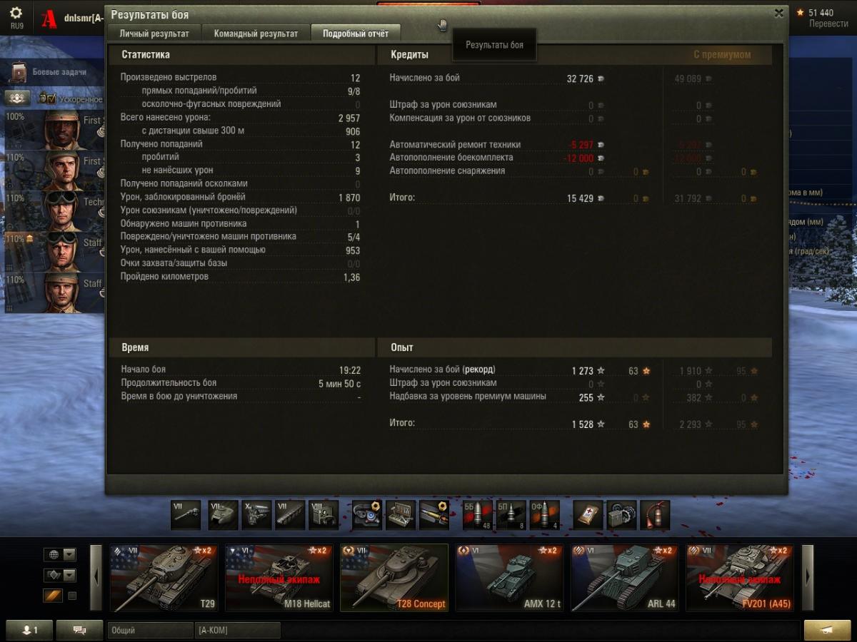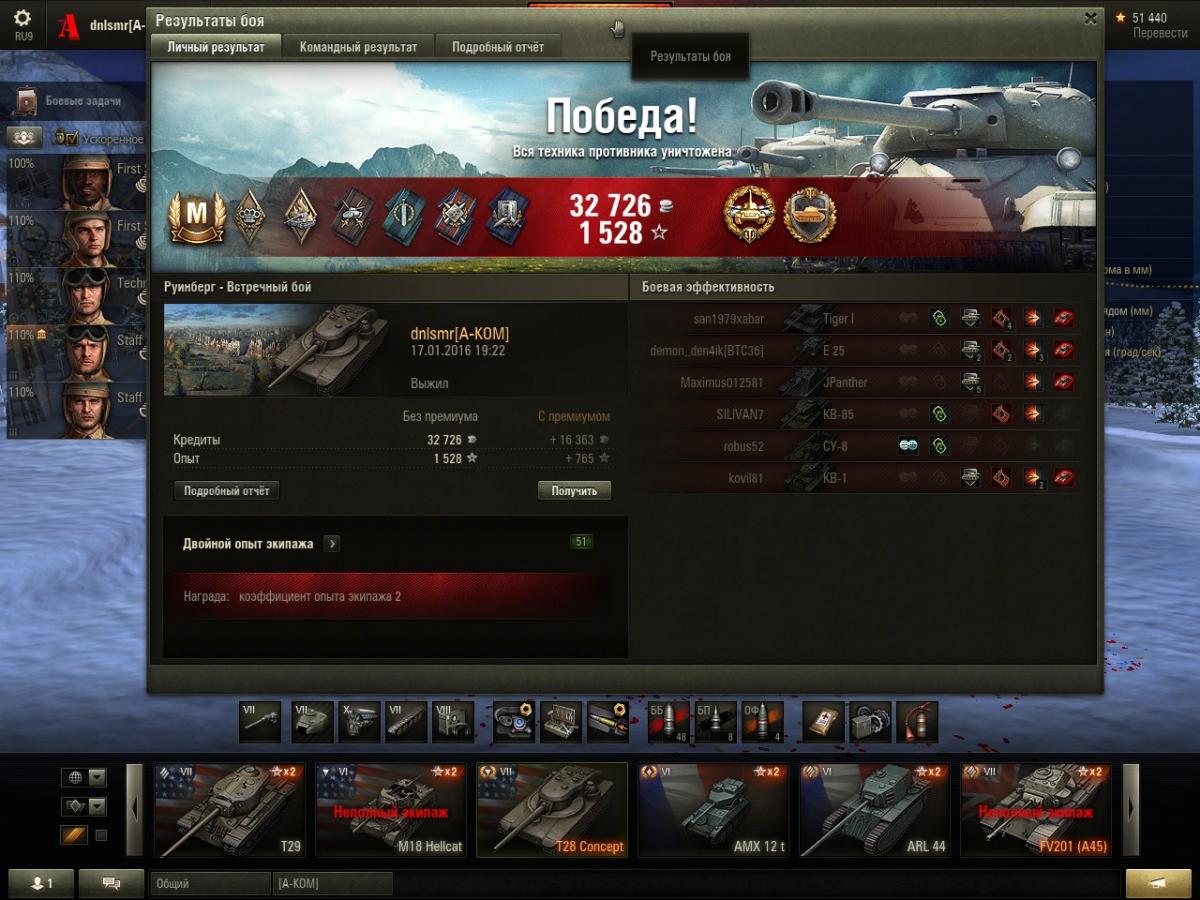 Тут решил покатать Концепта, экипаж для Т28 покачать. Два вечера были боль и страдание - сплошные (буквально!) проигрыши, то я ничего не сделаю, то команда сольётся, или и то и другое вместе.
