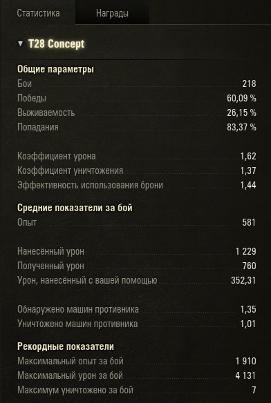 Ты крупно ошибаешься. Более подвижные танки с более комфортными орудиями (не только Т20, а и Т29, даже ИС-2) ну ни разу не страдают на дне списка. Подвижность же Концепта крайне редко позволяет ему реализовывать некомфортное орудие по полной, а брони на девяток уже не хватает. К слову, с 700 обзора я был бы MVP в каждом бою. То есть спокойно светил бы Е25 в кустах с 445 метров.
