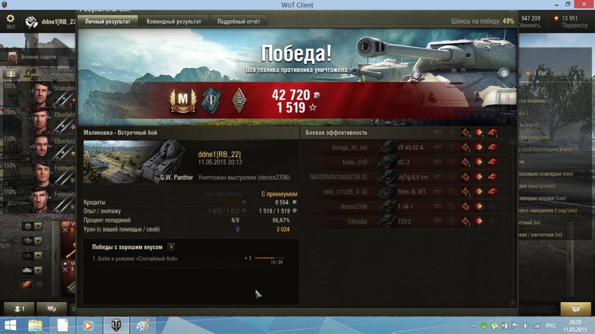 Экипаж родной - посадил его на пантерку свежим с 75%, прошел на ней все 1200 боёв. Сейчас 2 и 81% 3-го.