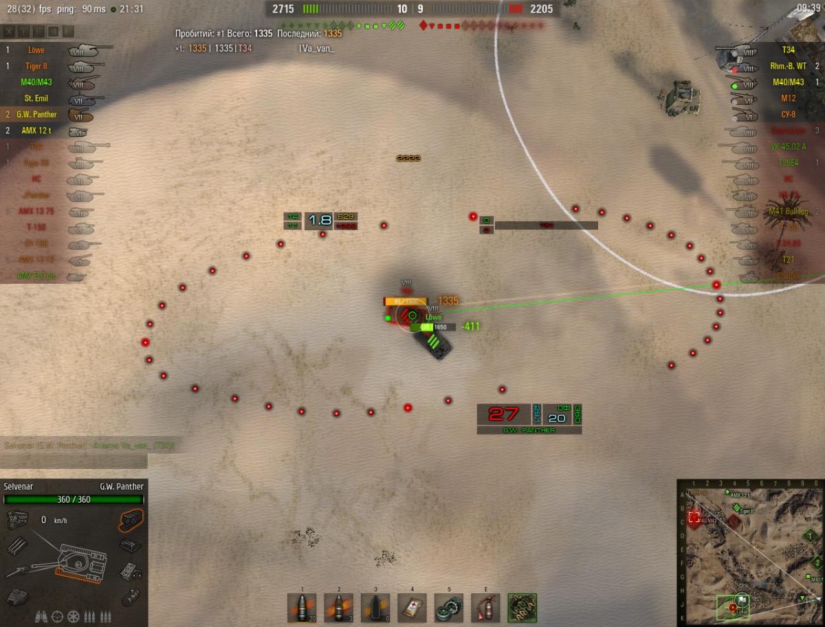 2) снаряд летит немного  с отклонением в сторону откуда летит, иногда и вовсе может не долететь до танка, Возможно это из-за того что снаряд летит по более низкой дуге, оттого, кстати, и быстрее.