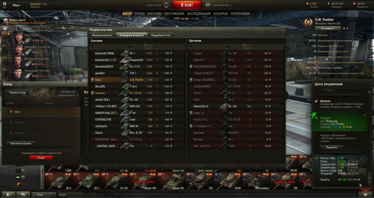 Вчера вечером решил освежить ангар артой. Взял в очередной раз пантеру. До этого играл на ней, но что-то она меня совсем не впечетлила после советских бура и 212. Был крайне разочарован и продал. А тут надо выполнять лбз. В общем был крайне удивле пантерой. Частенько видел как проходит полный урон, даже без сведения с вертухана снаряд заходил в противника. Признаться я был в шоке! Два раза подряд брал мастера. Первого мастера взял и немного взгруснул, так после боя увидел х2. Зашёл тут же в бой и на тебе очередной мастер. Приятно http://cdn-frm-eu.wargaming.net/4.4/style_emoticons/wot/Smile_Default.gif процент побед за ночь взлетел до  70 http://cdn-frm-eu.wargaming.net/4.4/style_emoticons/wot/Smile_Default.gif хотя с уроном все печально до 1000 не дотягивает http://cdn-frm-eu.wargaming.net/4.4/style_emoticons/wot/Smile_sad.gif  Признаться с командами союзников очень везло. Рвали противников. А вот противники , складывалось мнение, что они пацифисты . в общем еле успевал давать дамаг. Были и промахи, но всеже радостных моментов этой ночью пантера мне доставила много.