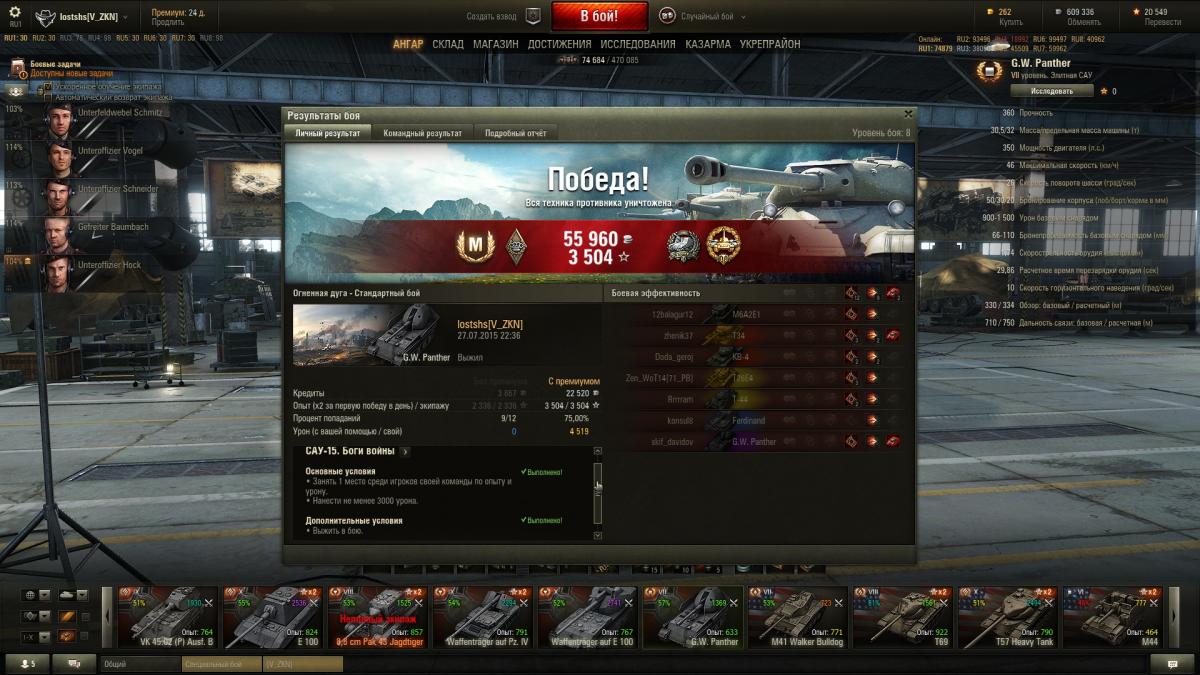 ЛБЗ по САУ, 14 заданий на ГиВи , 15- на М12. Хюммель и М44 - тоже отличные. А вот француз 6 уровня не пошёл.