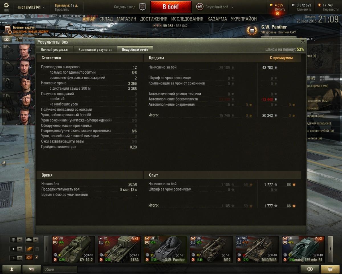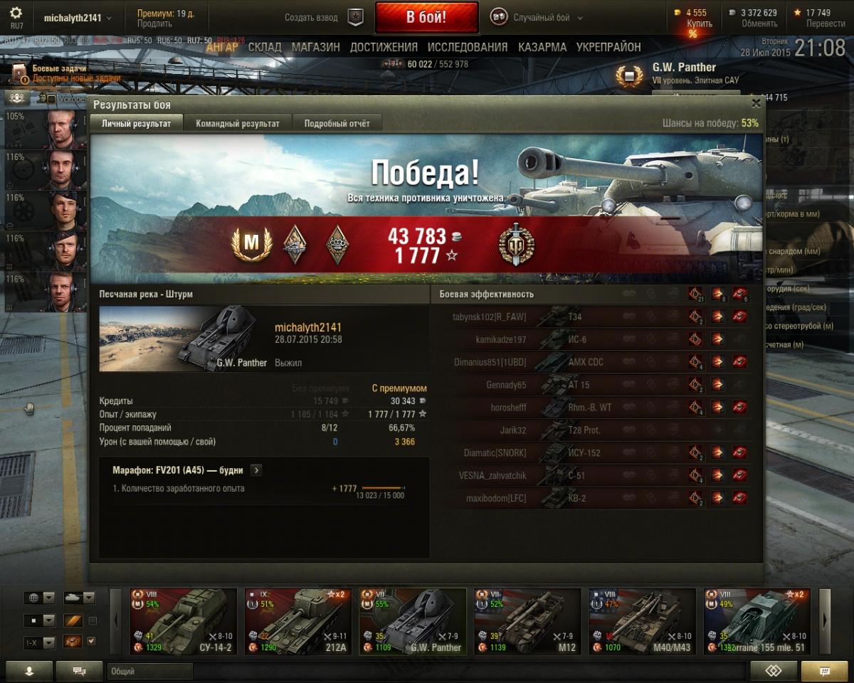 Камрады, 15е ЛБЗ выполнял как раз на М12( до этого 14 сделал на Гиви П, буквально за пару дней), так вот - предыдущий бой, почти не одного попадания, а следующий( когда 15ЛБЗ сделал) -просто чума, каждый снаряд -в цель. Этот ВБР реально напрягает - на хрена такое: один бой- ни фига, другой бой- всё отлично.