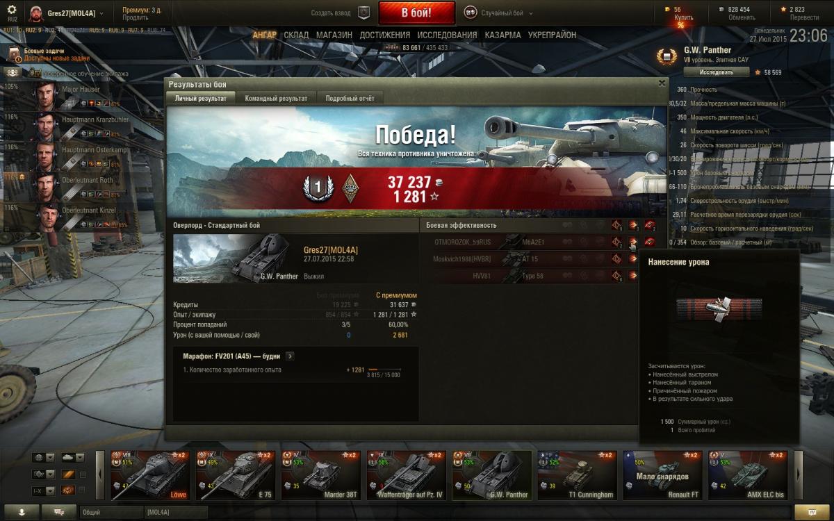 Ну так возьми Хумеля и катайся,зачем Пантерку то мучить стоковым стволом?