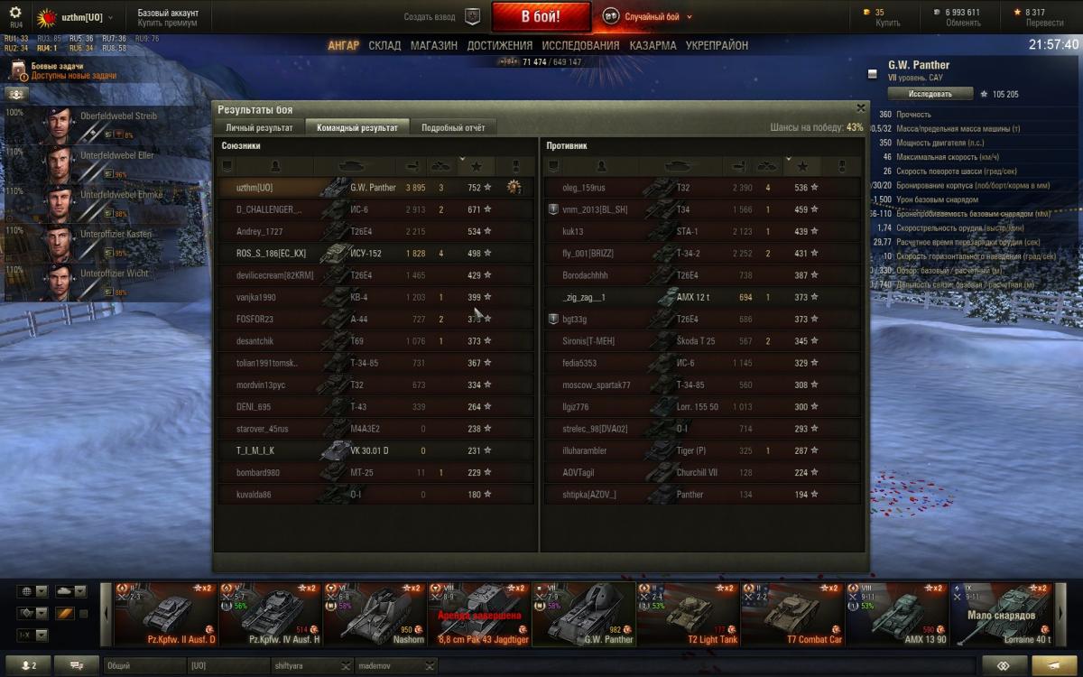 Да как этот танк вывести хотя бы в 50%??? Уже неделю идут одни сливы, турбосливы. Уже исследовал Тигра, но бросать на 47% не хочется, а подняться выше не даёт ВБР. Горит не по-детски просто. Если есть у кого желание скатать взводом, буду рад.