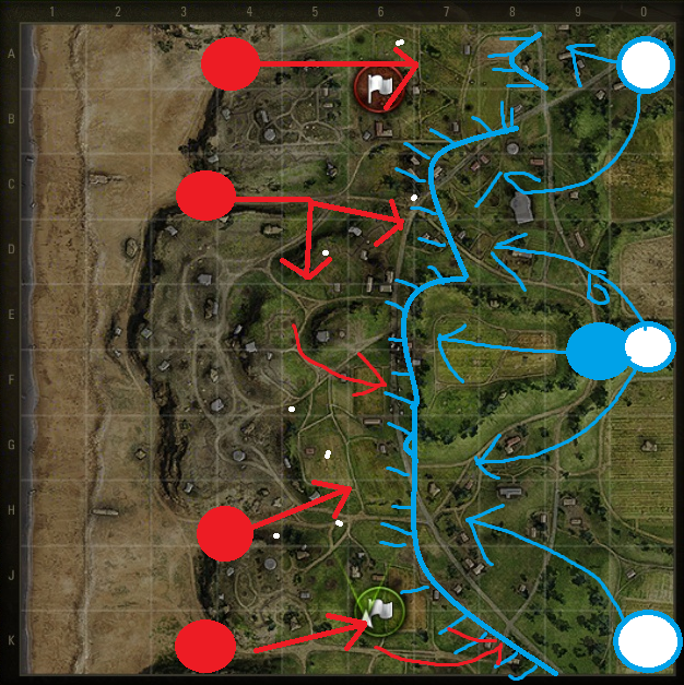 La_Fleur_ Опубликовано: 23 апреля, 2015 Игроки 1 956 публикаций 30 342 боя Поделиться Опубликовано: 23 апреля, 2015 Уважаемые разработчики. Предлагаю вам сделать режим Штурм на этой карте. Конечно всё надо доработать, проработать. протестировать и т.д. Но я позволил себе наглость нарисовать ориентировочно как это может выглядеть.Красным обозначены респауны атакующей команды.Синий полностью круг, базаБелый круг в синий окантовке респаун защищающихся.Стрелки примерные разъезды.Конечно возможно карту придётся слегка переделать, но идея то, есть! Сезонный случайный бой Ссылка на комментарий
