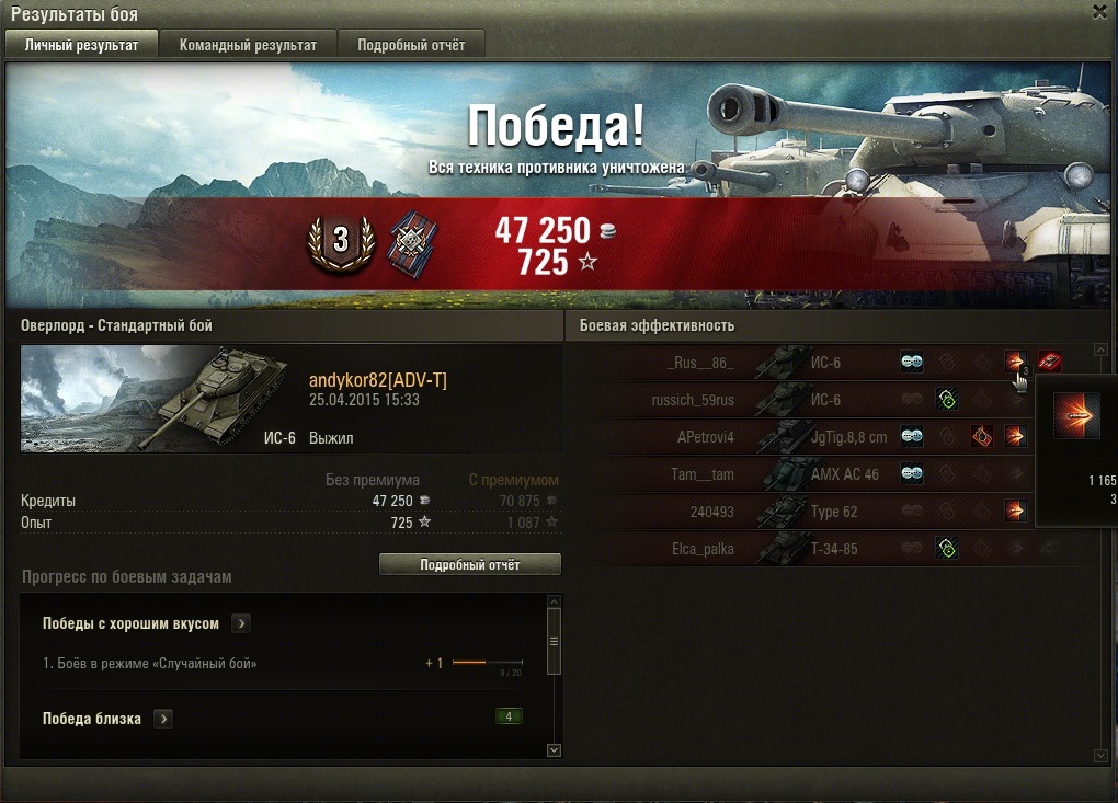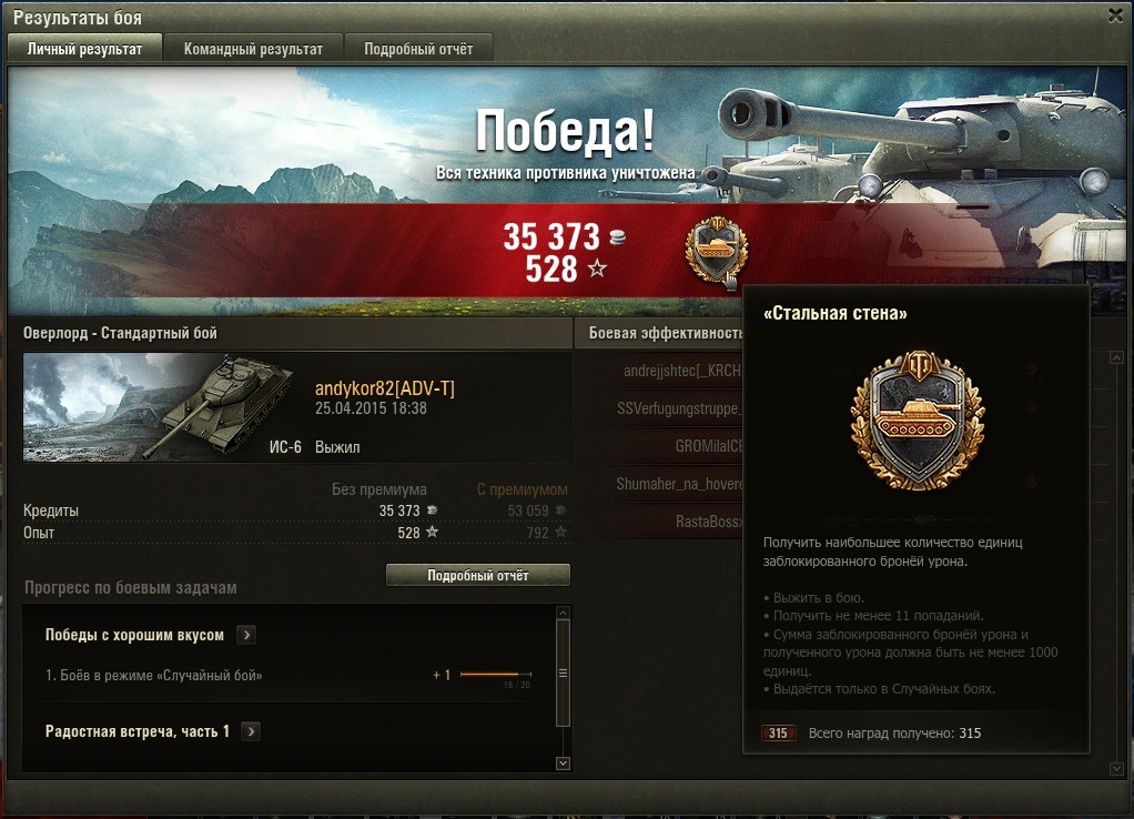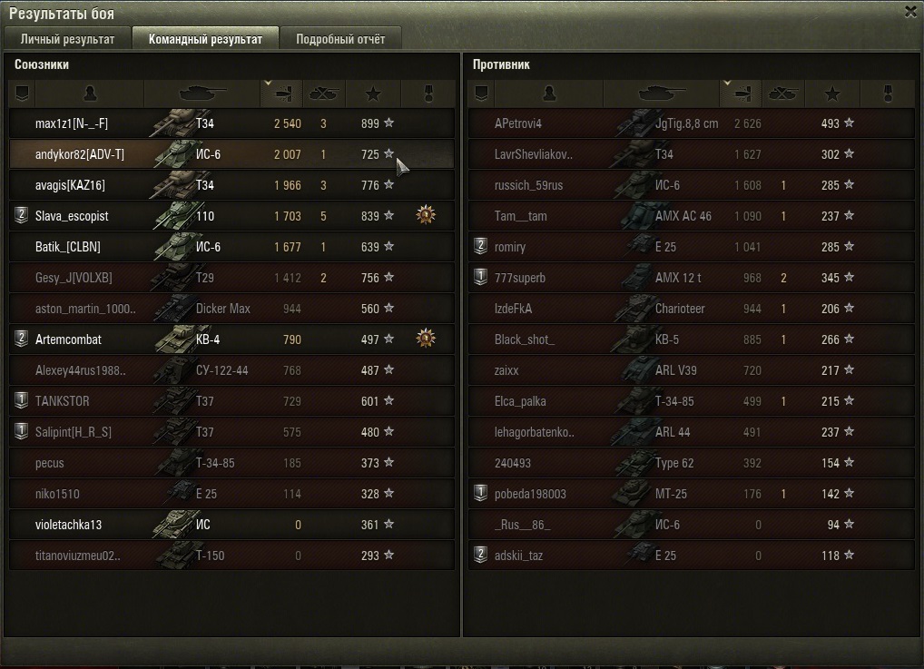 andykor82 Опубликовано: 24 апреля, 2015 Игроки 88 публикаций 58 267 боёв Поделиться Опубликовано: 24 апреля, 2015 (изменено) Попал!! все-таки был я на ней аж 2 раза сегодня!!! прорвало! и оба раза на ис6, оба раза с верхнего респа! Впечатления! команда - реально ошалевшая... летят сливаться но... кучка умных пт и лт врагов... и кучка умных союзников... и вот карта получаеться довольна играбельна! 2 раза выйграли... ис6 красава! как всегда! Сначало конечно неприятно, когда не совсем понимаешь откуда пт накидывает.... но после пару засветов уже все отлично!!! Главное правило на ней играя на ТТ - не лететь в омут с головой! Занять удобные позиции около своего респа... все проанализировать... кто где сливаеться, как быстро, и уже от этого танковать! Карта для тт реально понравилась, но танковать сильно никак не получаеться! Раш - пока бессмысленен. Игроки карту плохо знают (99% первый вопрос: я тут 1 раз куда ехать?). Танкую от Брони. Пару подсказок со своего опыта: 1. ЛТ только лес по 0 линии... они всех видят - их никто!2. СТ или берег или поддержка ЛТ по 0 линии... Все. Больше никуда им нельзя! ПТ контролят всю середину.3. ТТ - или берег помогать СТ, или сверху со стороны берега, но недалеко! все время аккуратно, и прятаться... Выискивать неаккуратных ст и пт которые или сидят у себя дома (возле респа) или тех кто по центру пробрался и уже почти доехал до нашей базы... Оба раза вбр кидал без САУ. http://cdn-frm-eu.wargaming.net/wot/ru/uploads/monthly_04_2015/post-13305787-0-59244900-1429912803_thumb.jpghttp://cdn-frm-eu.wargaming.net/wot/ru/uploads/monthly_04_2015/post-13305787-0-98872800-1429912818_thumb.jpghttp://cdn-frm-eu.wargaming.net/wot/ru/uploads/monthly_04_2015/post-13305787-0-60524000-1429912836_thumb.jpghttp://cdn-frm-eu.wargaming.net/wot/ru/uploads/monthly_04_2015/post-13305787-0-29926400-1429912845_thumb.jpg Изменено 24 апреля, 2015 пользователем andykor82 1 На каждого Ис-5 найдётся своя ИСУ-152! Ссылка на комментарий
