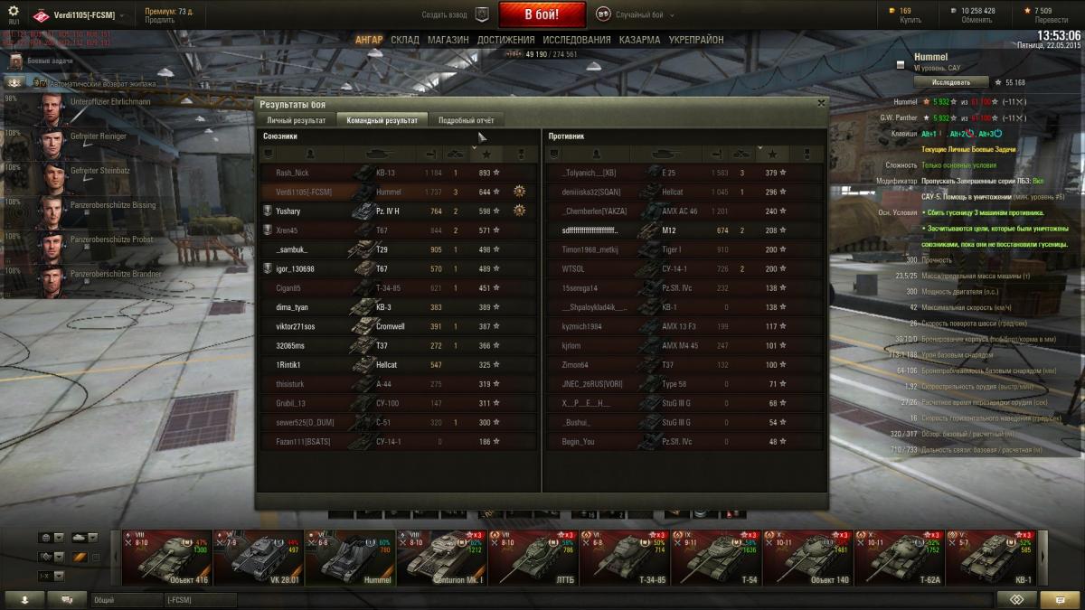 А вообще хум не нравится. Незадолго до этого прошел ветку британской арты, так мне показалось что он и рядом с ними не стоял. А по косости далеко впереди даже крузайдера. К счастью осталось катать на нем совсем немного. Немецкую ветку заброшу. Считаю её самой слабой среди всех веток арт.