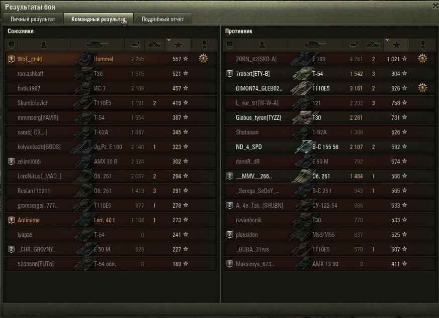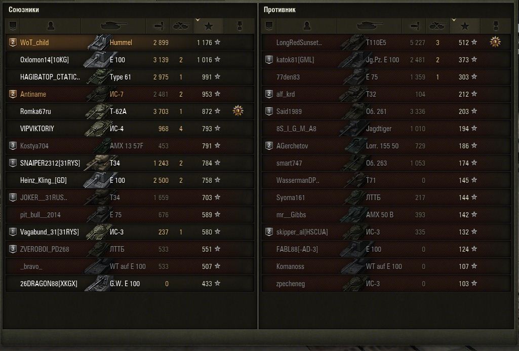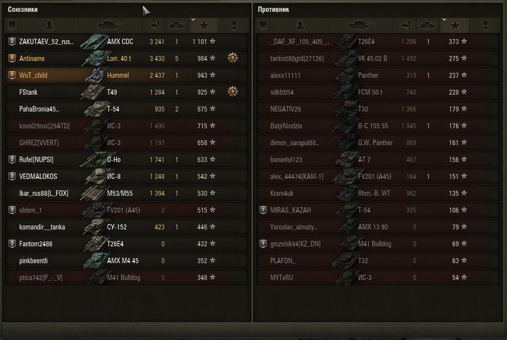 У вас самого средний урон на Пантере выше чем на Хумеле.