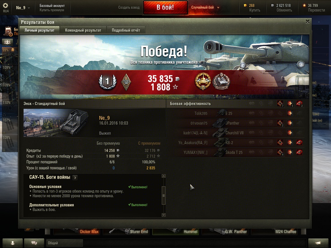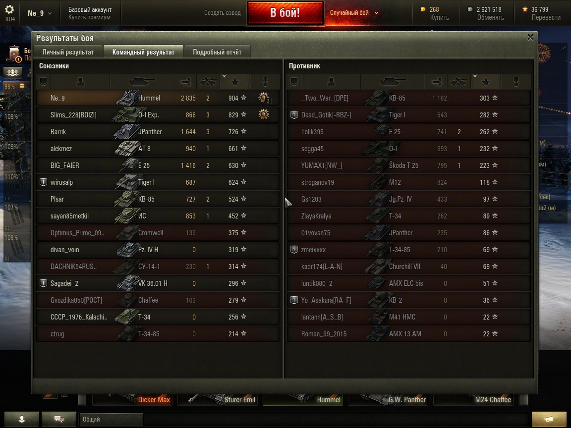 Похвасатаюсь чуть чуть,  хороший бой, хорошая машинка. Второй экипаж на нем качаю. Пантерка не так вкатила как этот аппарат. Экипаж еще не 100%.