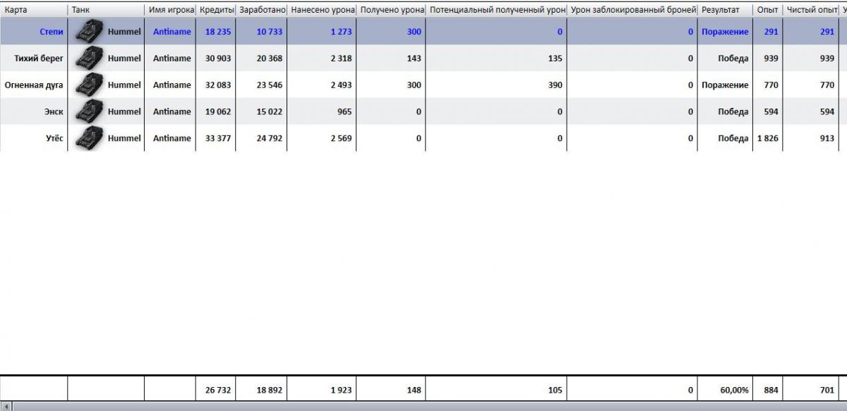 Меня тоже Хум радует. 123 боя 61% побед. И еще о себе и родственниках много узнал. Играю на сток стволе. Изменено пользователем He_nonaJl