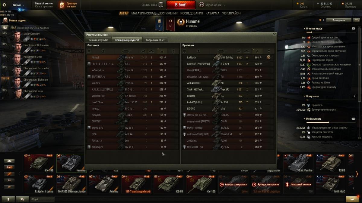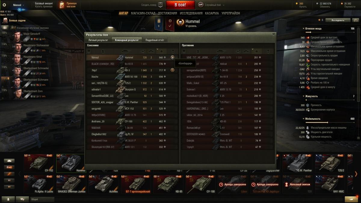 Мда... думал привыкну после патча к новым характеристикам хума, но не получается. Ужасно долгое кд на стоке. Для сравнения кд на стоке такое же как у гвп на топе, только у хума ББ вкачано, у гвп нет. Думал набить три отметки на нем, но видимо отложу эту идею в долгий ящик. Гвтп исследован, осталось по акции купить и пересадить экипаж с хума, благо подходит. Прощай хум, я запомню тебя как коня на 6лвл с адскими кумулятивами.