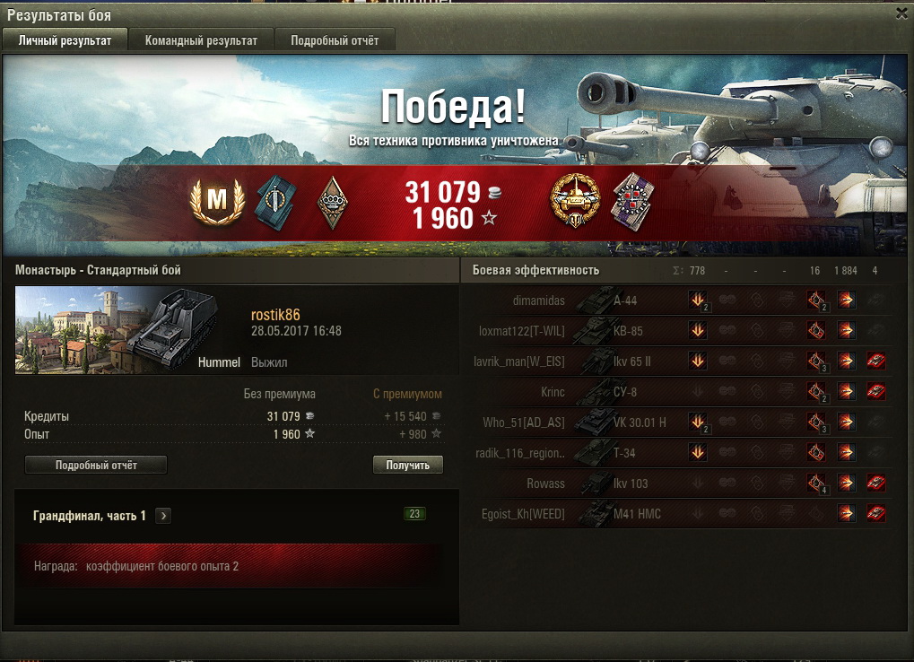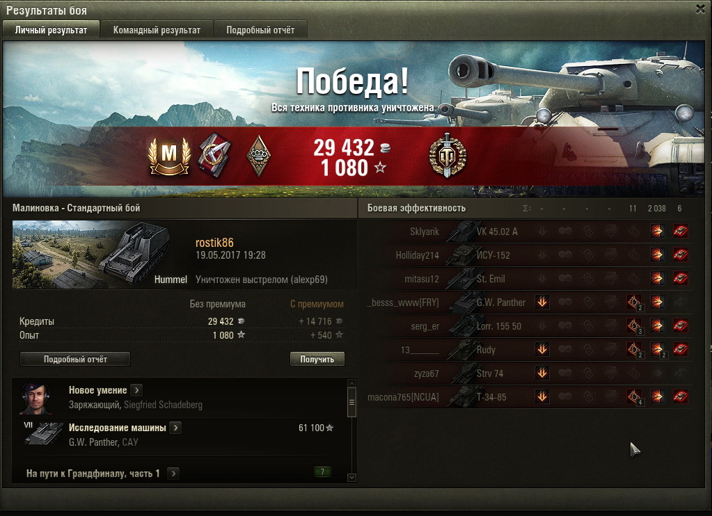 Но сама машина нравится. За два вечера все ЛБЗ на штуга с отличием выполнил. Но, в тоже время есть сильное желание прокачаться дальше, так как надоедают 5-6 уровни боев, где по полю гоняют ЛТ, Т67, Кромвели и т.д. А на команду всего дай бог 1-2 тяжа будут. Так пока дождешься их появления, или твоя команда на 60-70% поредеет, или вражеская.