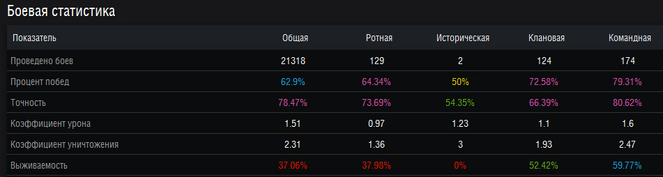 Zeus002 Опубликовано: 7 апреля, 2015 Мододел 1 289 публикаций 72 719 боёв Поделиться Опубликовано: 7 апреля, 2015 (изменено) 07 Апр 2015 - 08:57 пользователь SilencerNT сказал: У меня за последние полтора года (9к+ боев) 68% побед, при этом ротных и клановых боев на аккаунте максимум боев 300, а командные бои и укрепрайоны вообще не идут в общую стату.Уважаемый, вы конечно хороший игрок, но ОЧЕНЬ лукавый))) Вот ваша статистика:Все могут убедиться, что ваш профит достигнут за счёт НЕ рандомных боёв...Рота, клан и команда - вот то, что выращивает вашу статистику. К тому же - вы играете СКОНЦЕНТРИРОВАННО большинство боёв льготном танке E 50 Ausf. M. Не распыляете статистику.) Второй ваш любимый танк - голдозависимый Е100. Вот и всё. Все остальные танки вас мало интересовали, что говорит о том, что вы играете только из-за статистики. Изменено 7 апреля, 2015 пользователем Zeus002 2 Модпак от девушки! Только лучшие моды 1.41.0.0 Lesta в сборке от Zeus002 - http://wot-zeus.ruТелеграм Zeus002 Ссылка на комментарий