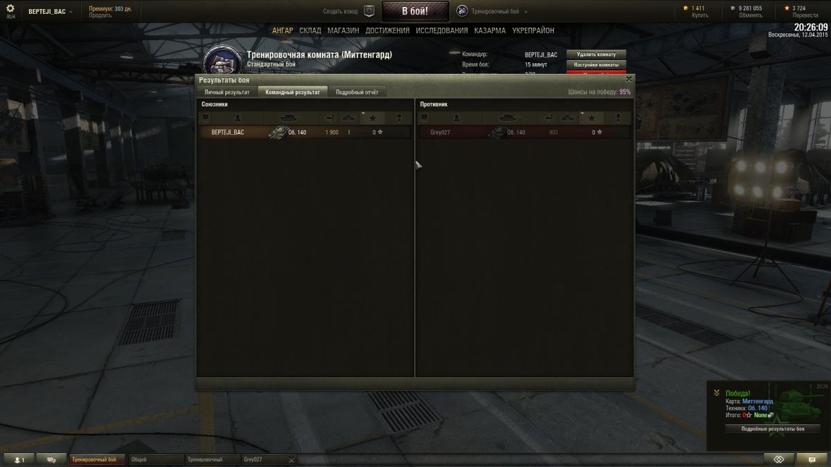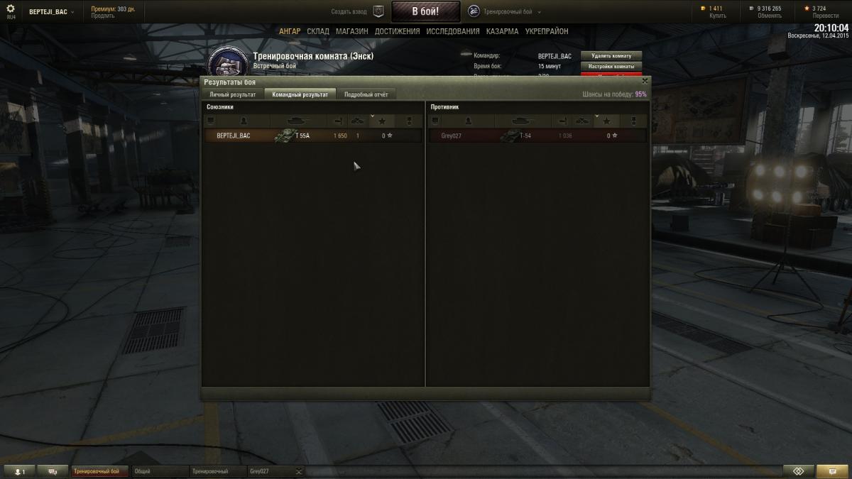 _MIKIS_ Опубликовано: 12 апреля, 2015 Игроки 1 367 публикаций 64 973 боя Поделиться Опубликовано: 12 апреля, 2015 Ну вот и закончилась наша мини-дуэль с ТСом, 3 боя 54vs55a на энске, 3 боя 140vs140 на миттенгарде. Играли с родным обвесом, но без голды. Результат предсказуем: 6:0 в мою пользу. К чести ТСа, могу сказать, что может он и не самый лучший игрок, но катать с ним было приятно, никаких истерик и матов, все культурно. Проиграл как мужчина, за это респект. Сам следственный эксперимент считаю удавшимся, 52% превосходит 48% не в прямой пропорции, а в разы.PS: в третьем бою на 54, ТС заставил меня таки попотеть, разошлись с минимальным разрывом в 1 шот http://cdn-frm-eu.wargaming.net/4.3/style_emoticons/wot/Smile_blinky.gifPPS: если надо, могу запостить наши ракореплеи http://cdn-frm-eu.wargaming.net/4.3/style_emoticons/wot/Smile_Default.gif 3 Ссылка на комментарий