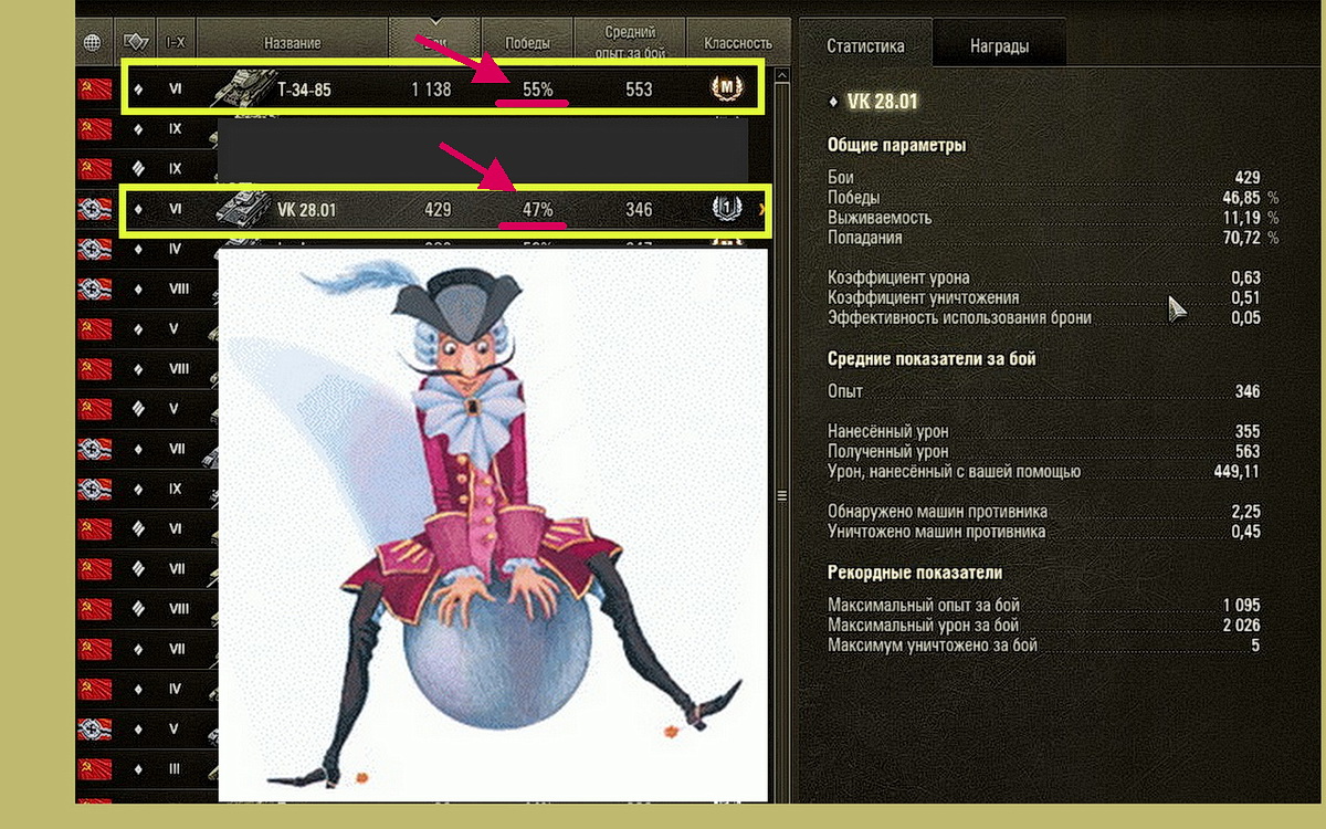 18408 Опубликовано: 30 марта, 2015 Игроки 1 705 публикаций 36 313 боёв Поделиться Опубликовано: 30 марта, 2015 (изменено) 30 Мар 2015 - 14:10 пользователь Hightower2005 сказал: Т.е. без взводов у Тебя бы было честных 48?) хм... ну я взводом катаю очень мало это не сложно проверить посмотрев по наградам или по статистике тех же рот и так далее... ну было бы на пол процента меньше ну на процент... суть не в этом, а в том, что по процентам побед сложно о чем то четко судить...кому то везет больше кому то меньше, кто то больше играет на 10лвл кто то на 1лвли так далее... слишком много переменных что бы говорить что то конкретно... люди играют по разному... я вот например вижу что бой не пошел.. или у меня или у команды - еду сам сливаюсь и не теряю время потому что смысл мне париться и что то городить - проще выйти и зайти на другой технике, авось все пойдет по лучше... и таких как я не мало игроков. Изменено 30 марта, 2015 пользователем 18408 Ссылка на комментарий