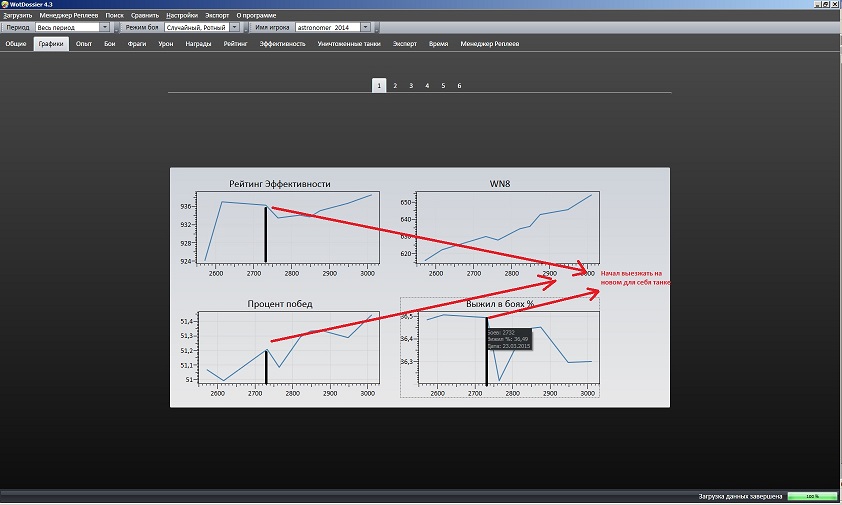 anonym_7c35Kc8pKYg7 Опубликовано: 31 марта, 2015 Игроки 25 894 публикации 34 767 боёв Поделиться Опубликовано: 31 марта, 2015 31 Мар 2015 - 09:22 пользователь astronomer_2014 сказал:Ну, вот у меня есть маленькое наблюдение. Оно всего лишь одно, ибо я не так давно в этой игре (всего 3000 боев), и еще рано говорить о какой-то закономерности. Так вот, заметил, благодаря программе WotDossier, что как только я начал кататься исключительно на подарочномPz.Kpfw. II Ausf. D, так ту же упало всё от РЭ до ПП. При этом, получается, что и один такой рак как я, может сильно оказывать влияние на команду.Скриншот графика из программы с моими отметками: -0.1% и -4ед РЭ - это крах! Ссылка на комментарий