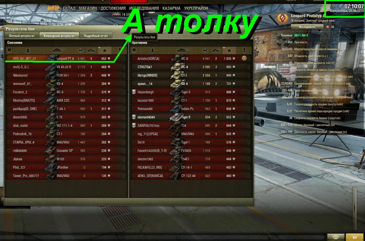 Skuns___ Опубликовано: 5 апреля, 2015 Игроки 844 публикации 25 304 боя Поделиться Опубликовано: 5 апреля, 2015 (изменено) Вчера собрал не большую статистику по топигрокам по итогам победных боев - подавляющее большинство с 51-53 ПП. Правда, уже после сбора инфы я понял, что данные не корректны, т.к. необходимо просматривать ПП всех игроков, на предмет наличия папиков или ботов. Изменено 5 апреля, 2015 пользователем mr_Ladoga Ссылка на комментарий