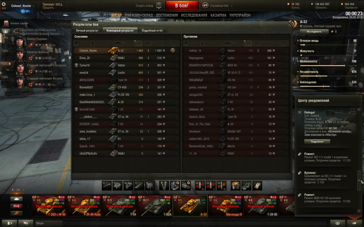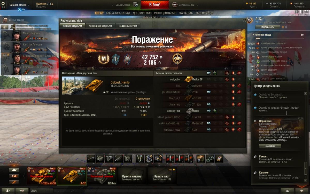 Покатал обновлённый А-32, мммм, так приятно. Средний урон ~580, а был ~400)) вот такой небольшой ап, кстати катал без использования голды, то есть апнутая точность дала такую прибавку))