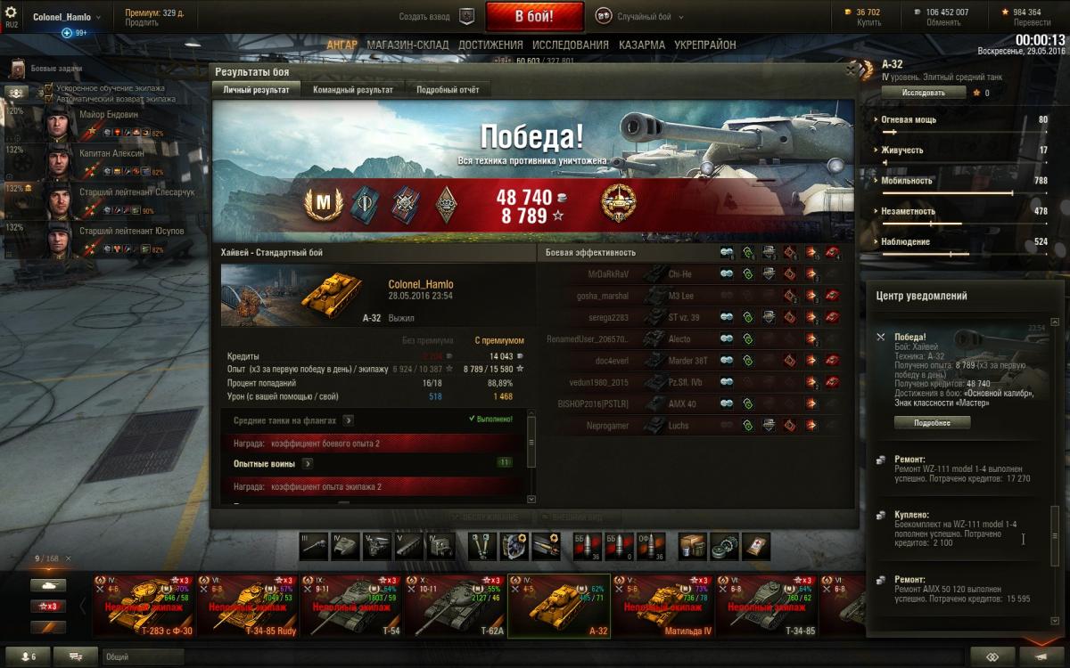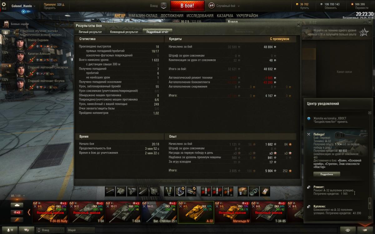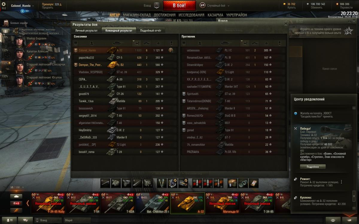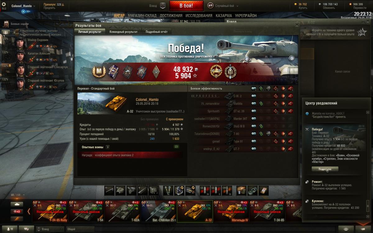 Получено кредитов: 48 932 (компенсация за урон от союзников: 48)