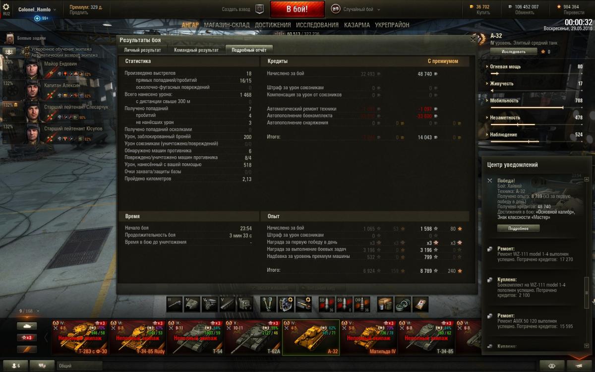 Получено опыта: 8 789 (x3 за первую победу в день)