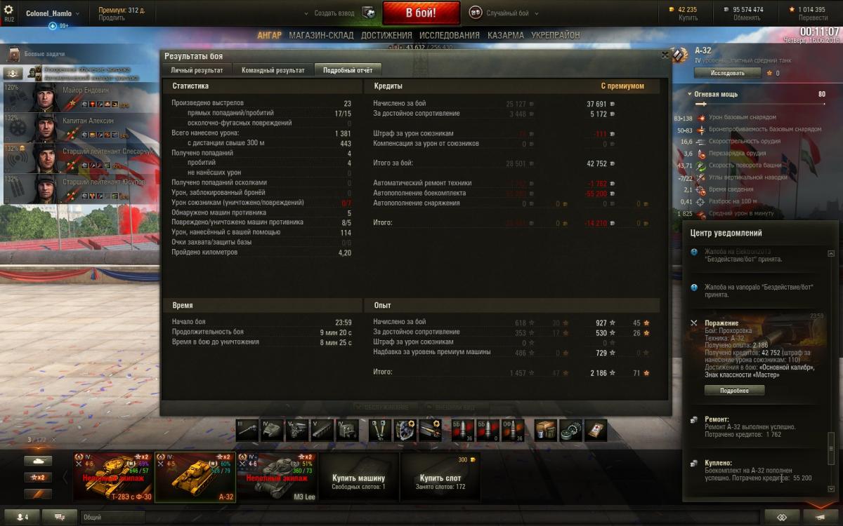 Получено кредитов: 42 752 (штраф за нанесение урона союзникам: 110)