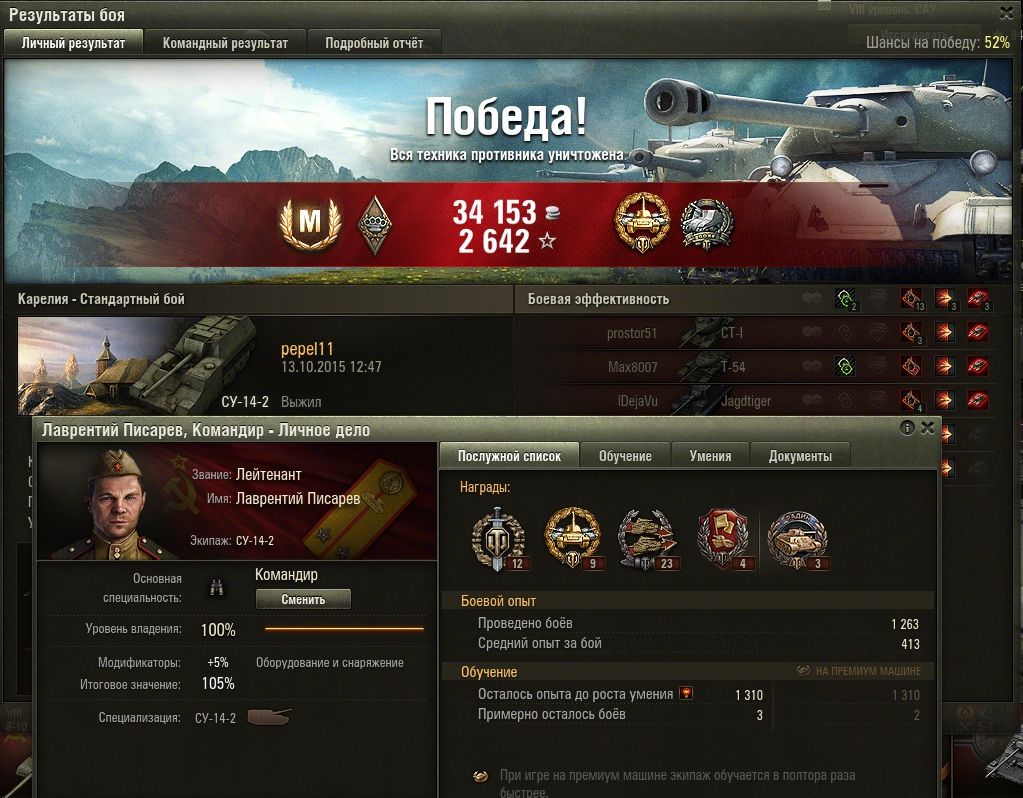 pepel11 Опубликовано: 13 октября, 2015 Игроки 462 публикации 110 469 боёв Поделиться Опубликовано: 13 октября, 2015 13 Окт 2015 - 23:07 пользователь AngelOfEvil сказал: Медаль начисляется технике, а не экипажу Зачем бред писать, где вы на технике медальки увидели? Откройте инфу любого с экипажа там все медальки когда либо полученные. Ссылка на комментарий Поделиться на других сайтах Другие способы поделиться...