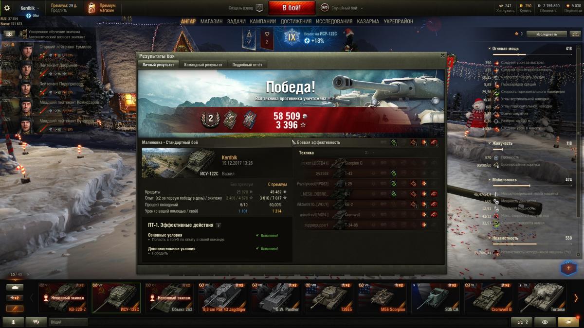 Прокачал Су100, понравилась, оставил в ангаре. Теперь катаю один экипаж на два танка с Громом.