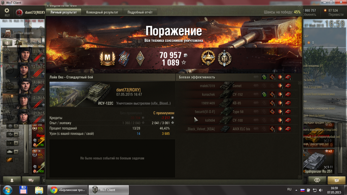 В итоге я расстрелял целую СУ-122-44, надомажил вторую и ИС-2 которых по моему засвету добрала команда.