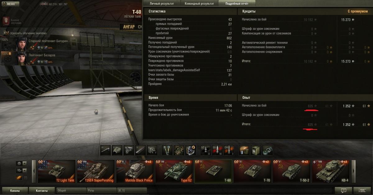 Это на УГ ПЦ 1 можно было рассчитывать. Танк так явно слабоват был, что его в рандоме охотники за званием "Эксперт" искали сутками. С Т-60 такой низкий порог не прокатит. Я, собственно, не против был бы. Это значило бы что я в топ уже попал. Но надо смотреть трезво. 1000 опыта на т-60 - просто хороший бой без заоблачных достижений.