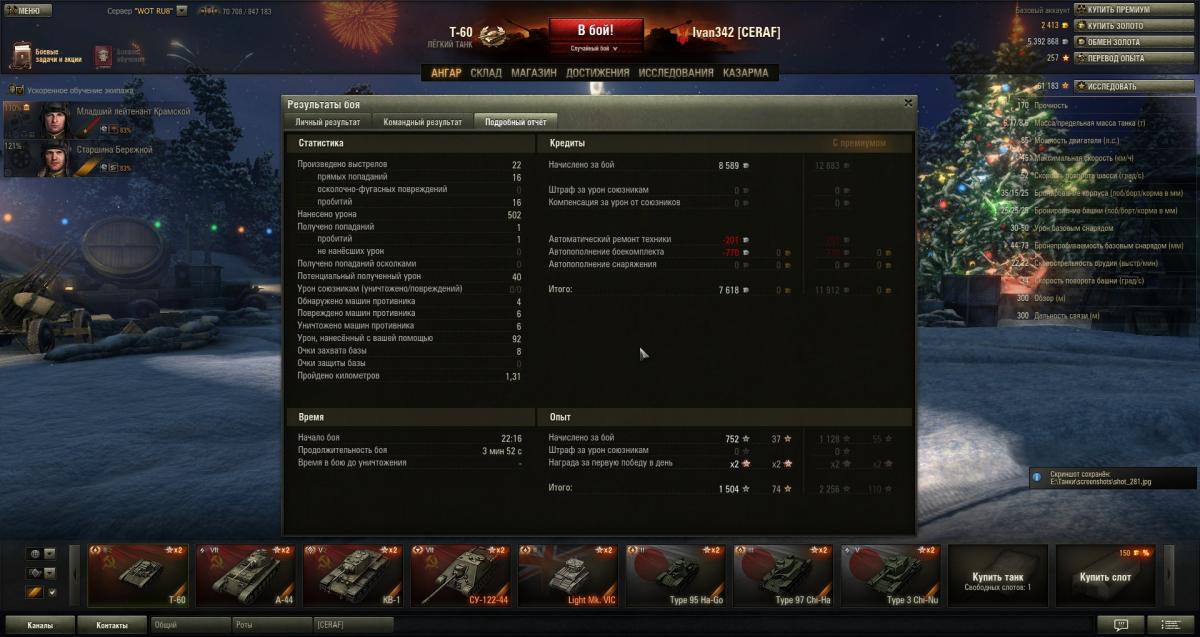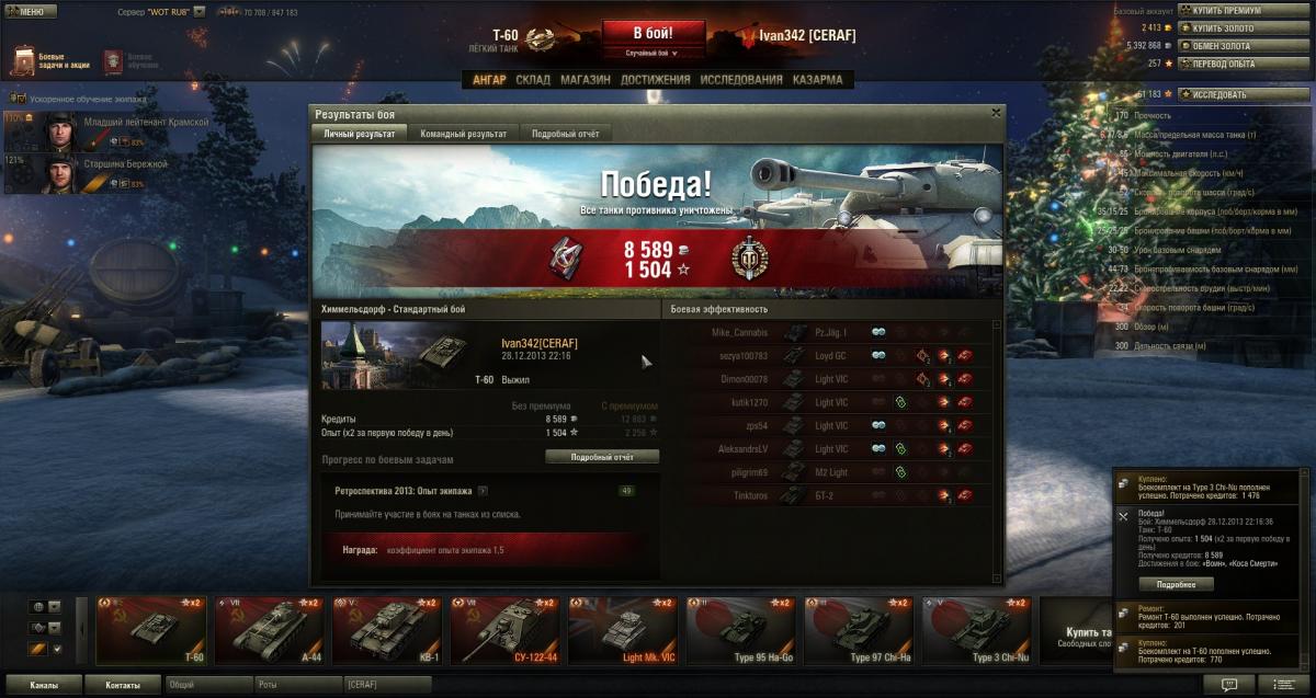 Имея Т-60 с ТНШ, последние подарочные танки (Т1Е6, Т7, Виккерс) кажутся слабыми, проигрывают Т-60 во всем, кроме скорости.
