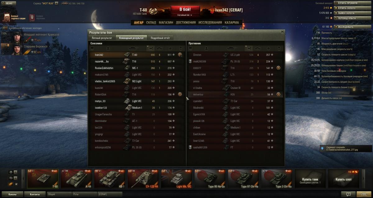 Согласен. У меня оба этих танчика в ангаре, и на обоих Мастер. Вообще традиция, получая на машинке в одном бою Мастера+Воина, ну и еще там что, тут же оставлять навсегда в ангаре, слотов не жалко)) В общем, готов и на них катать, экипажи неплохие, модули имеются))