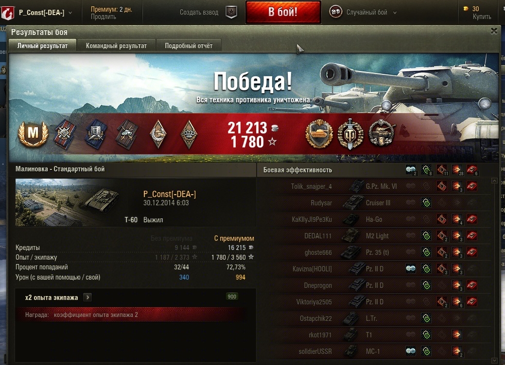 На крузере соотношение урона 2.9, уничтожение 2.8. Средний урон за бой под 300. И это действительно для крузера средние показатели, полно игроков, которые из него выжимают куда больше. А вот процент побед у меня всего 58 (не 60). При этом боев уже больше 800, так что ПП можно считать устоявшимся,  едва ли он сильно изменится, скорее мне крузер надоест))) Чтобы его увеличить, надо уже играть взводом, а я это не люблю, играю только рандом.