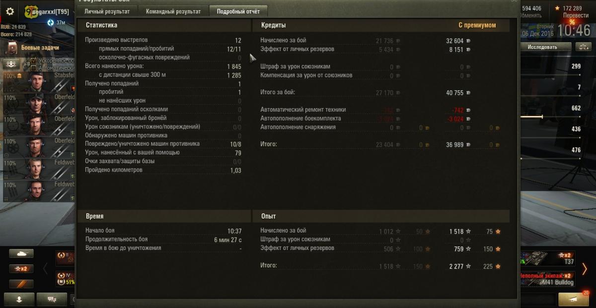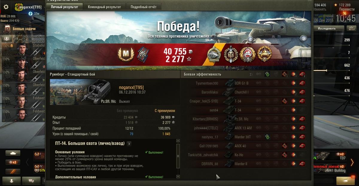 Это был второй бой. В стоковой комплектации, конечно, кроме рации. И экипаж 90%. На самом деле, просто повезло немного )