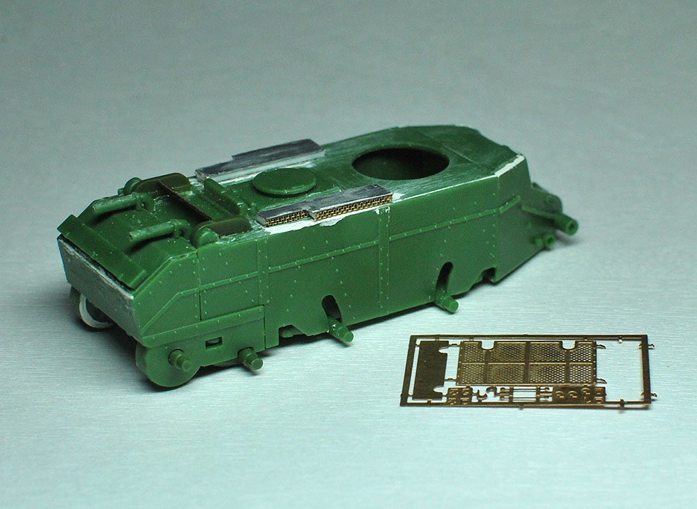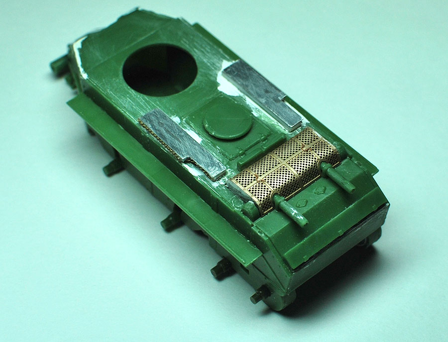 Lyolik_O Опубликовано: 7 сентября, 2015 Игроки 2 737 публикаций 38 055 боёв Автор Поделиться Опубликовано: 7 сентября, 2015 После продолжительной паузы продолжаю стройку. Сделал заново кожухи воздуханов сэндвичем из пивжести и листового пластика. В боковые полости воздуховодов вклеил сеточку плетенку размером 0,25 мм (самая мелкая, что была в наличии). С чайного пакетика не стал ваять, так как несущих свойств у нее нет, может просто утонуть вглубь в проеме под жестяной крышкой кожуха.http://cdn-frm-eu.wargaming.net/wot/ru/uploads/monthly_09_2015/post-11427538-0-84047900-1441657760_thumb.jpgСледующий этап - фототравленая сеточка с набора. Ссылка на комментарий