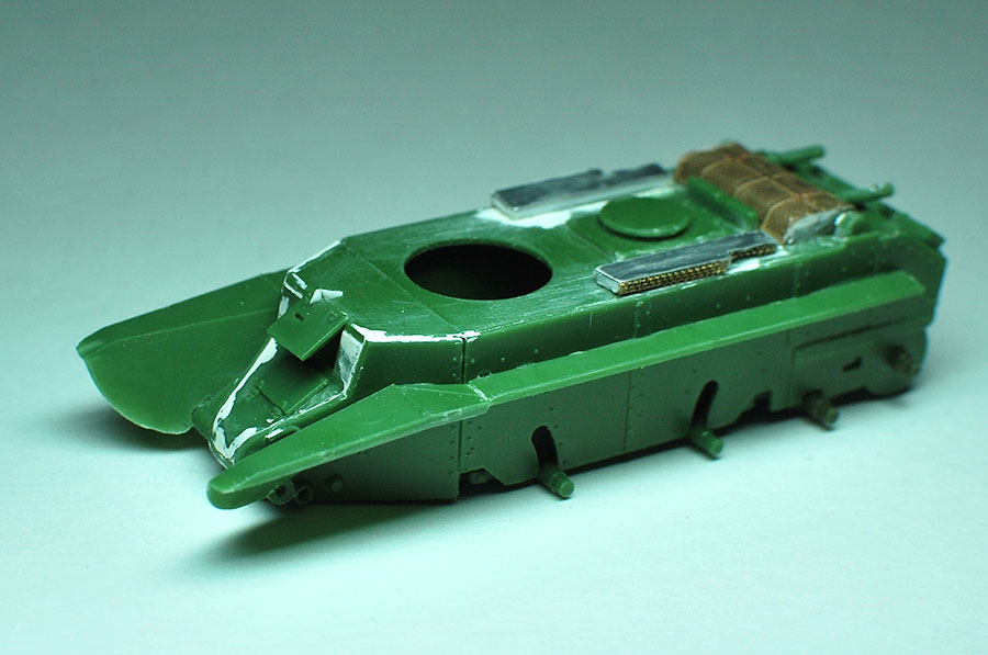 Lyolik_O Опубликовано: 17 августа, 2015 Игроки 2 737 публикаций 38 055 боёв Автор Поделиться Опубликовано: 17 августа, 2015 Небольшой отчет о проделанной работе. Собрал коробку и как предполагал...http://cdn-frm-eu.wargaming.net/wot/ru/uploads/monthly_08_2015/post-11427538-0-61516200-1439839959_thumb.jpgНо всё поправимо, тем более кромки на стыках боковых и лобовых плит проварены, а значит шпаклевка не испортит соответствие матчасти. http://cdn-frm-eu.wargaming.net/wot/ru/uploads/monthly_08_2015/post-11427538-0-05564400-1439840070_thumb.jpgЩели зашпаклевал. Посмотрел на защитные кожухи воздуховодов и как-то приуныл. А ведь на оригинале там еще и сеточки. Решил перепилить их. Есть еще на остатке сеточки от чайного пакетика, что остались после "Пантеры".http://cdn-frm-eu.wargaming.net/wot/ru/uploads/monthly_08_2015/post-11427538-0-88531500-1439840257_thumb.jpgСрезать аккурат по уровню горизонтальной плиты не получилось, да это и не очень важно. Дальше пойдет импровизация. http://cdn-frm-eu.wargaming.net/4.4/style_emoticons/wot/Smile_crab.gif 2 Ссылка на комментарий