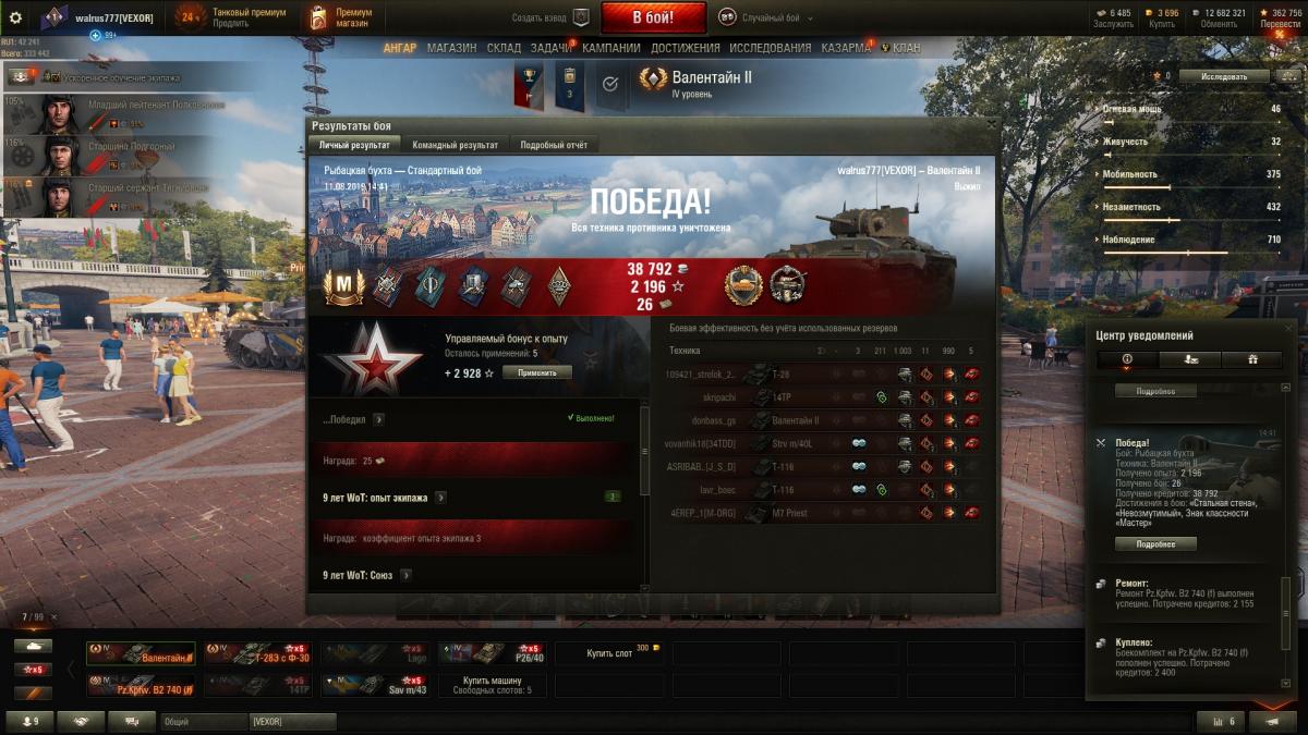 Получил по инвайт-коду для прохождения рефералки рекрутом. Прошёл её за 413 боёв с почти 59% винрейтом и средухой 460. На голде танк вполне неплох. С премом( я играл без према, но с +50% доходность по рефералке) на голдовых снарядах и обычных расходниках почти всегда в плюсе по серебру. Иногда имбует, иногда бывает почти бессилен против всяких Матильд и Хетцеров. Но они страдают не меньше попадая к 5-6 лвл. А Валя всегда в топе.
