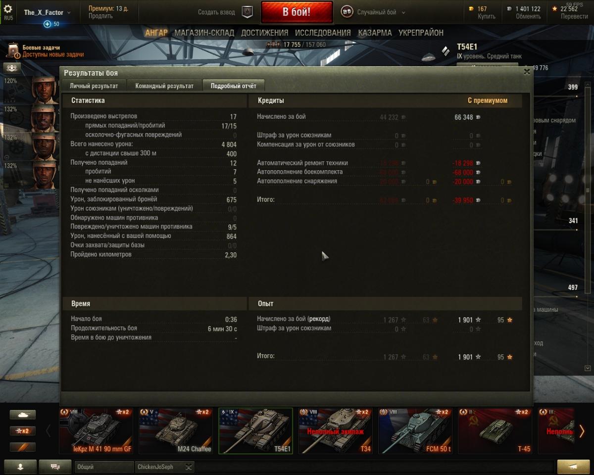 И вот подфармил я серебра на выходных и купил этого зверька. Катал раньше в друга и мне очень понравился, ну думаю ша нагну;-) так как имел почти 150к свободки решил не мазахивствовать и вывел сразу в топ. Экипаж посадил с хэвика (тот что для режима давался) но вот не задача - заряжающего почему то не оказалось, а радистов аж двое и все по 3 перка (один с т30 и еще один с какого то тоже такнчика с режимов ) ну не пожалел кровных задонатил 500голлы и переучил обезянку. Кароч надежды большие возлагал на грозного т54е1. Первый бой. 4 к урона 1 степень. Слив. Сразу же разделил опции для этого ст. Тут или едишь к тт и заранее заряжаешь голду или стоишь на 2 линии за ст. Больше вариантов нет. Хотя... разве что в топе 7 лвл анигилировать - тут все направления открыты. Динамика сносная, как говорил в гайде джов:"динамика как бы и есть, но скорее как у шустрого тт, нежели у ст" но впрочем, куда нам спешить то? Горку на рудниках никто и не планировал брать) броня очень понравилась, много рикошетов, может и 268 рикошетнуть по крыше башни а может и т71 на автоприцеле в лоб бить. Но впрочем хорошо. Хоть чтото. В орудие точность очень не устраивает. Танк как бы сам нимикает, мол я жирный, альфа с барабана высокая, ватный, но с кустов не постреляешь. Установил даже стаб и приводы, но финальная точность все равно не айс. Пробитие устраивает, мауса в лоб тоже как бы не планировал бить. Радует так же обзор. С куста пересвечиваем любого и кидаем первый снаряд по катку и понеслась. В общем с тех полу сотни боев, что скатал ставлю крепкую 4ку. Танк проходной, но страдать не буду.