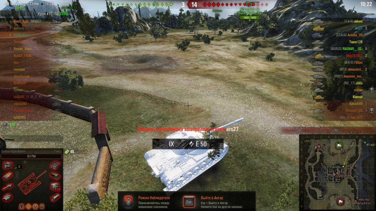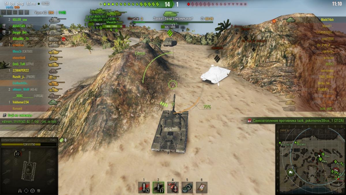 Оно и видно, как себя хорошо чувствует т54, когда в который раз не может на бб пробить моего е50, а после 3 выстрела уже летит кумулятив от него. Но вообще, спорить по т54 не буду, т.к. я его еще не приобрел.