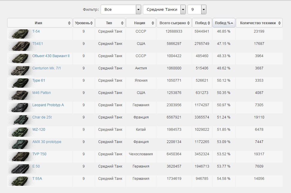 Те кто доказывают,что хомяк хороший танк ,идут не только против здравой логики,но и против статистики .54 понятно - на ней играет много новичков и неопытных игроков,это один из самых популярных ст в игре .Но что хомяк там в ***,в сравнении со всеми ст 9 ,говорит только о его ущербности.