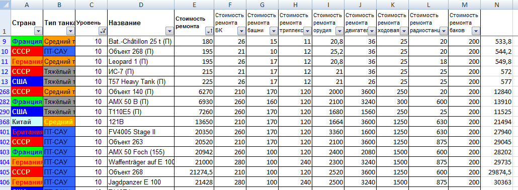 FFGH Опубликовано: 21 января, 2016 Игроки 1 324 публикации 39 821 бой Поделиться Опубликовано: 21 января, 2016 24 Сен 2015 - 21:06 пользователь HellQwer сказал: Табличка с коэффициентами доходности, ценой ремонта и снарядов, калькулятор прибыли:http://cdn-frm-eu.wargaming.net/4.4/style_extra/mime_types/doc.gif доходность.xlsx 170,54К.Получается, что самый неприбыльные танки ПТ-10, в особенности Фош.А в табличке со стоимостью ремонта Bat.-Châtillon 25 t, Объект 268, Leopard 1, ИС-7 и T57 Heavy Tank ничего не напутанно? От ближайшего Объект 140 они отстают в 27 и больше раз. Может нолик потерялся? Ссылка на комментарий